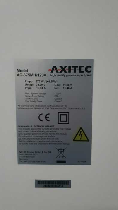 Das AXITEC GmbH AC-375MH/120V ist ein monokristallines Solarmodul mit 375Wp.