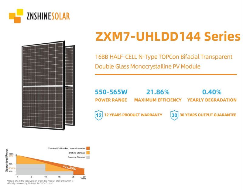 550 WP, 16BB HALF-CELL N-Type TOPCon Bifacial Transparent Double Glass Monocrystalline PV Module