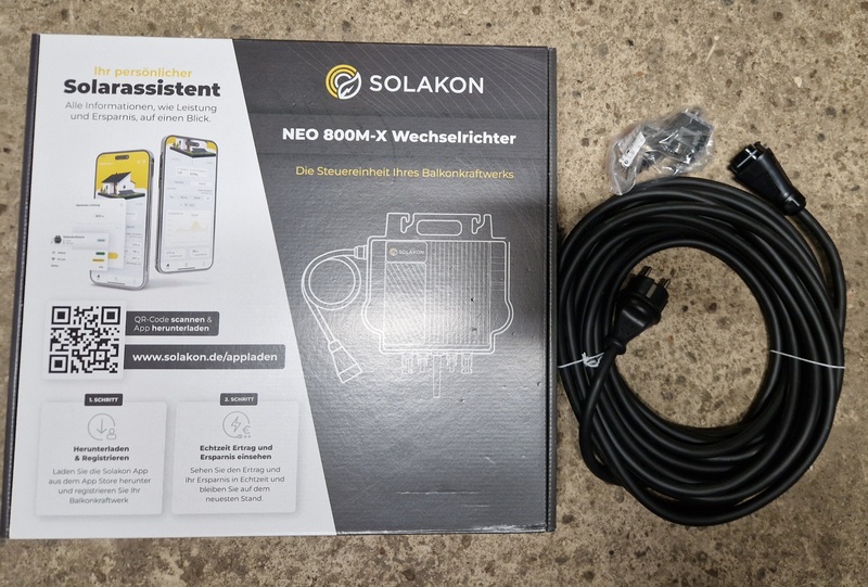 Zusätzlich gibt es ein 10m Anschlusskabel an das 230v Netz und eine Halterung für den Wechselrichter.