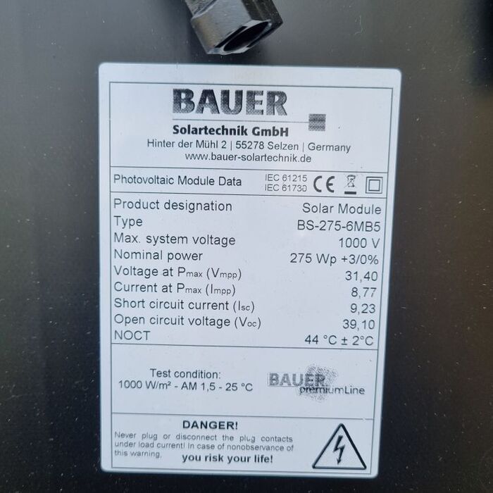 Das Bauer Solar BS-275-6MB5 ist ein monokristallines Solarmodul mit 275Wp.