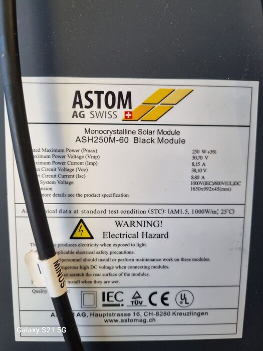 Das Modul Astom ASH 250M-60 Black Series ist ein Mono-Kristallines Modul mit 250 Wp.