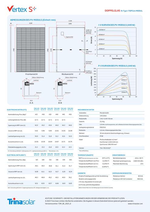 Trina Vertex S+ TSM-440NEG9R.28 440 Wp Glas-Glas Solarmodul