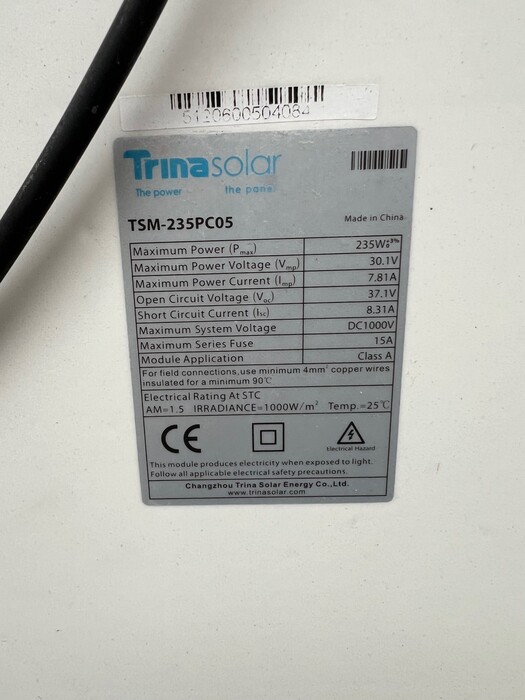Secondhand Trina TSM-235PC05 Solar Panels for Sale