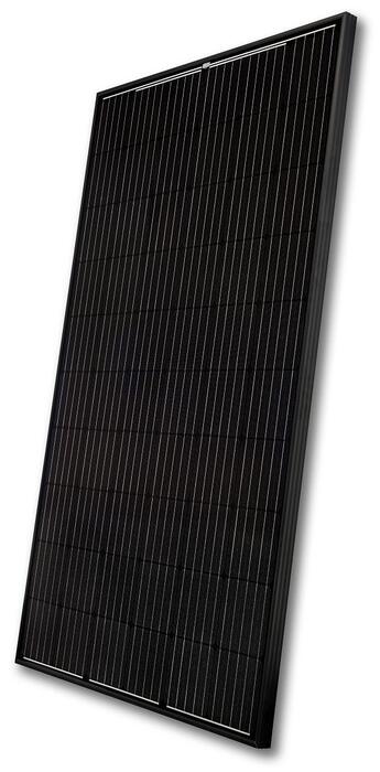 Hochleistungs-Photovoltaik-Modul, monokristallin, schwarzer Rahmen, schwarzes backsheet, Nennleistung 325 Wp, positive Leistungstoleranz + 4,99 %, 15 Jahre Produktgewährleistung,  25 Jahre lineare Leistungsgarantie (gem. Herstellerbedingungen), Made in Germany