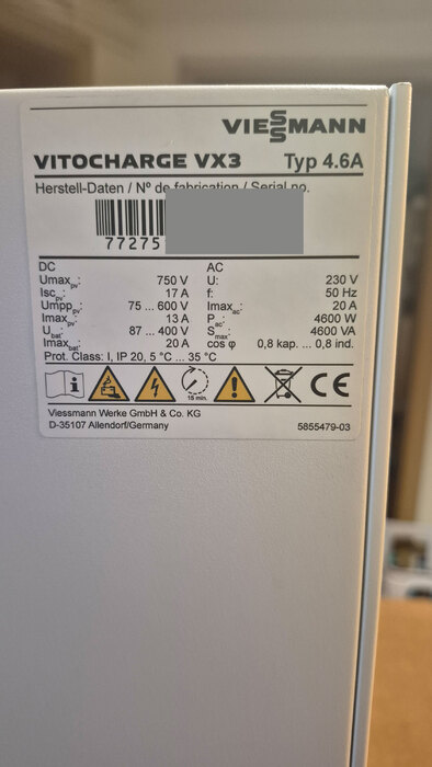 - 1 × Hybrid-Wechselrichtermodul Vitocharge VX3 Typ 4.6A