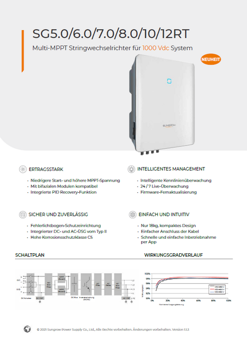 Diese Wechselrichter werden mit Garantie verkauft. Die Garantie ist direkt über den Hersteller abzurechnen. Die genauen Daten finden Sie im Datenblatt.
