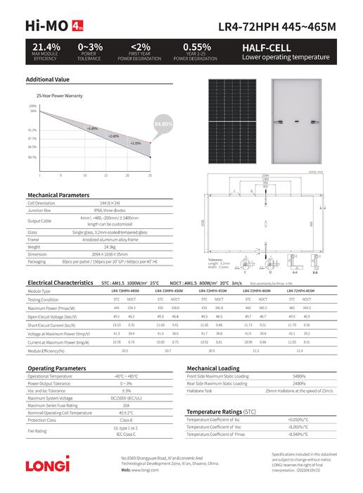Zonnepanelen / Mono / LONGI Solar - LR4-72 HPH 450 M G2