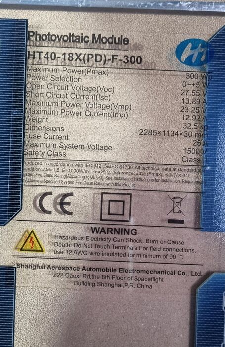 Das HT-SAAE HT40-18X-PD-F-300 ist ein monokristallines Solarmodul mit 300Wp.