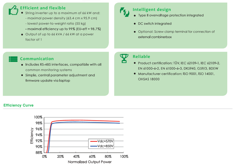 Der Wechselrichter gehört zu den zuverlässigsten Geräten seiner Klasse und bietet hohe Effizienz, flexible Planung und umfassende Sicherheitsfunktionen.