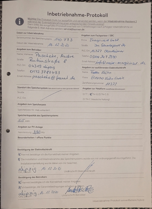 Wir verkaufen unsere Sonnenbatterie eco10 wegen einer Systemumstellung. Die Batterie wurde im Dezember 2020 in Betrieb genommen und im Dezember 2024  im Rahmen eines Innovationsaustauschprogrammes in ein neues leistungsfähigeres Modul getauscht.