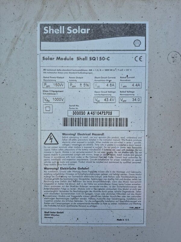 Ich biete 16 Solarmodule der Firma Shell mit einer Leistung von 150 Watt.