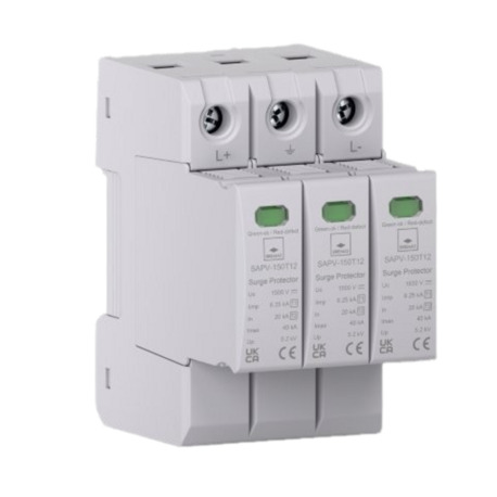 Der SAPV150T12 ist ein DC Überspannungsschutz Typ 1+2 / Klasse I+II für Photovoltaik Anlagen, ausgelegt für 1500 VDC.