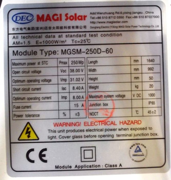 Zonnepanelen / Mono / Magi Solar - MGSM-250D-60
