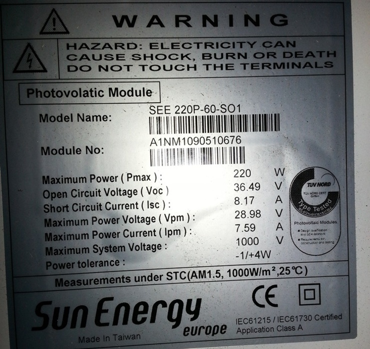 SunEnergy Europe - SEE 220P-60-SO1
