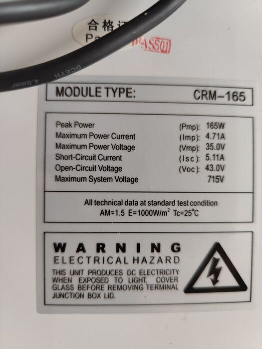 De Chaori CRM 165S is een monokristallijne zonnemodule met 165Wp