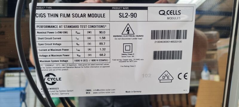 De Solibro SL2-90 is een frameloze dunne film zonnepaneel met 90Wp