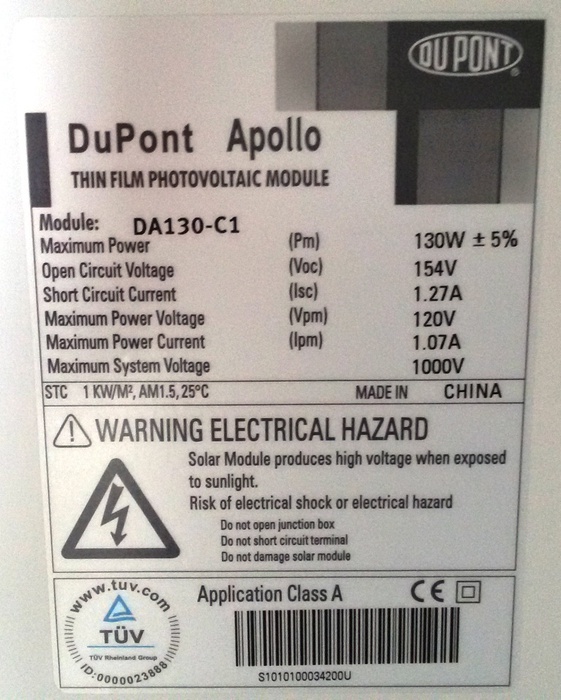 Das Du Pont Apollo DA130-C1 ist ein Dünnschicht-Solarmodul mit 130Wp