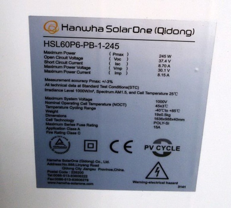 Hanwha SolarOne HSL60P6-PB-1-245 B / Hanwha HSL 60 P6 PB1 245B