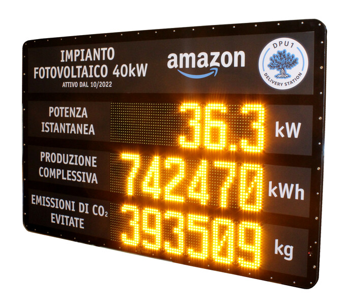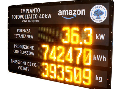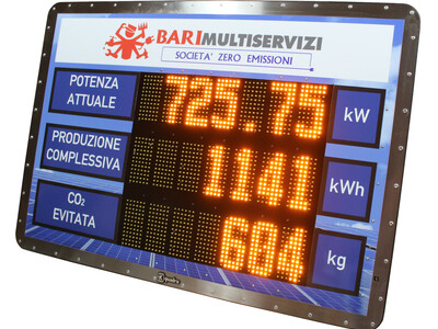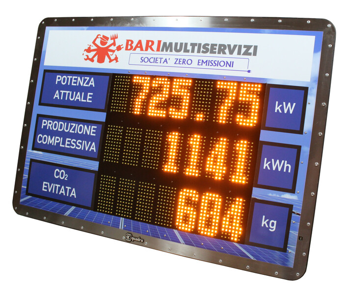 Progettazione e produzione tabelloni LED per la visualizzazione dei dati di produzione degli impianti fotovoltaici.Over Kquadro Elettronica SRL
